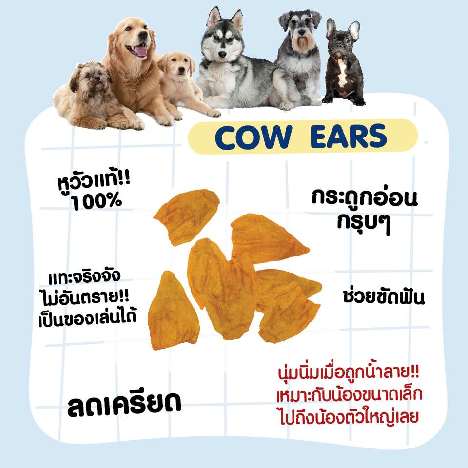 ใบหูแทรกด้วยกระดูกอ่อนกรุบๆ ให้น้องหมาแทะได้